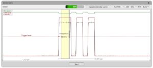Isso é conseguido sincronizando um sensor Viso com os pulsos de corrente medidos pelo LabAnalyzer. Isso permite medir com precisão fontes de luz intermitentes.