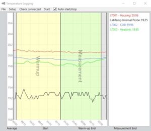 De acordo com a norma CIE  S 025/E:2015,  Método de ensaio para lâmpadas LED, luminárias LED e módulos LED , a temperatura ambiente no laboratório de iluminação deve ser de 25,0 °C, com uma tolerância de ±1,2  °C.