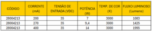 Temperatura de cor: 3000K